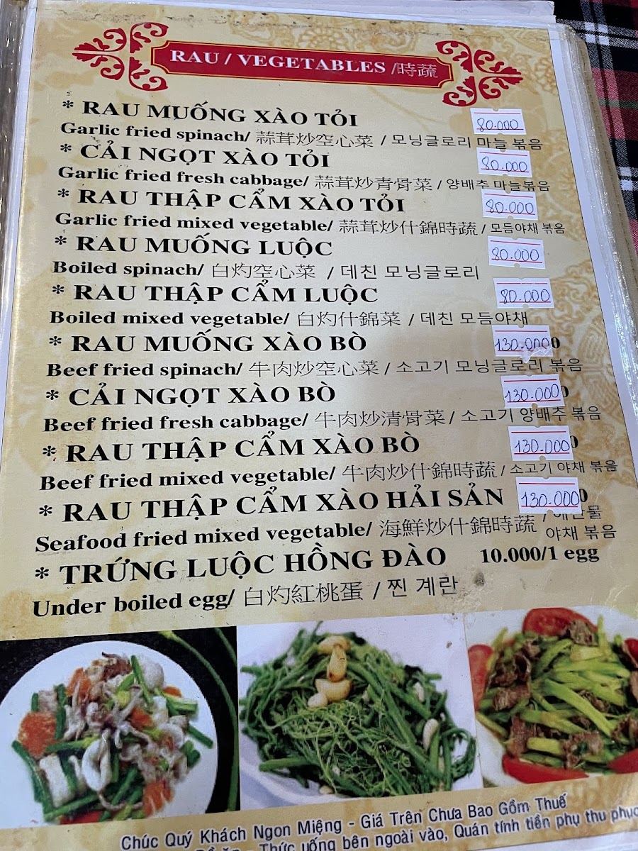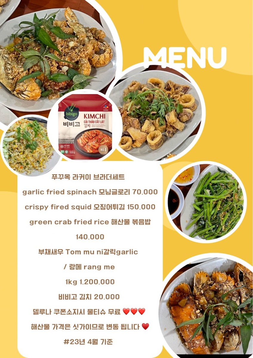 Ra Khoi Restaurant offers a straightforward and inviting seafood menu that reflects the fresh coastal flavors of Phú Quốc. The selection ranges from hearty, comforting dishes to light, refreshing options—perfect for sharing with family or a casual meal with friends. Whether you’re stopping by for a midday catch or a relaxed evening by the water, the menu balances simple coastal ingredients with familiar Vietnamese preparations.